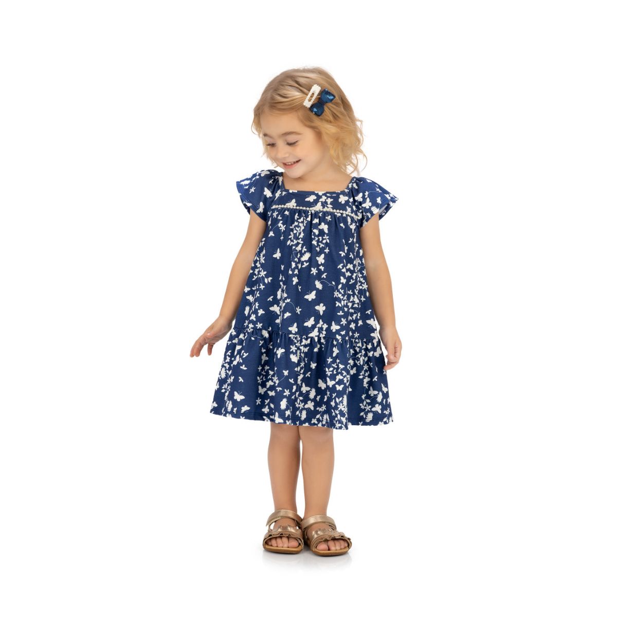 O Vestido Infantil Marinho com Estampa de Borboletas e Flores é a escolha perfeita para quem busca conforto e delicadeza em uma só peça. Produzido em tecido leve e macio, garante liberdade de movimento e um caimento soltinho que as meninas adoram.